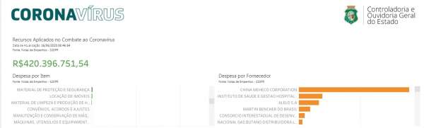 Uma das principais plataformas de transparência do Governo do Estado, o Ceará Transparente está disponibilizando, juntamente com a ferramenta IntegraSUS da Secretaria da Saúde (Sesa), dados específicos sobre os investimentos do Estado no enfrentamento à COVID-19.