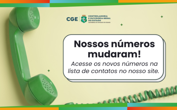 A Controladoria e Ouvidoria Geral do Estado (CGE) informa que os números de ramais internos utilizados para atendimento ao público e comunicação interna passaram por atualização. A mudança ocorre em virtude da migração do serviço de telefonia, anteriormente fornecido pela Oi, para a Empresa de Tecnologia da Informação do Ceará (Etice).