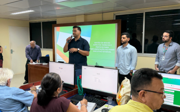 A capacitação é conduzida pelos auditores da Coordenadoria de Auditoria Interna Governamental da CGE, Paulo Mateus Barros, Mateus Albuquerque e Yurik Coelho, e integra o processo de implementação da atividade de consultoria em Gestão de Riscos oferecida pela CGE aos órgãos e entidades do Poder Executivo Estadual.