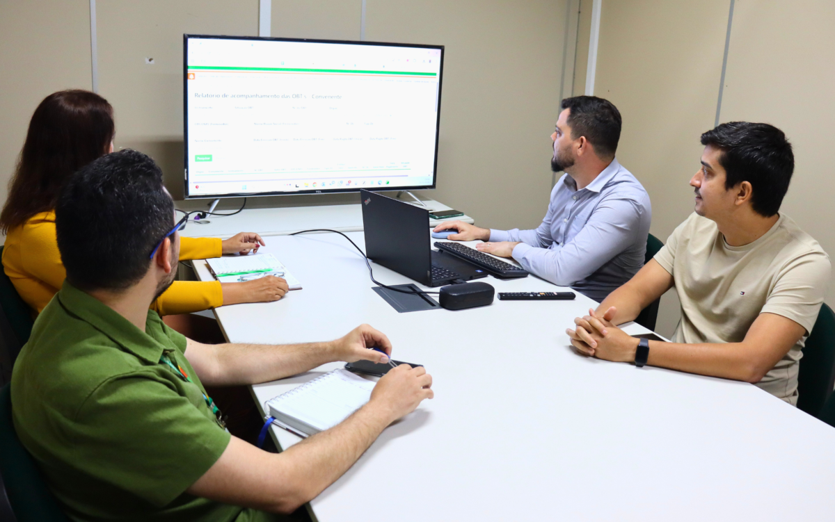 Na ocasião, o representante da SEAS, colaborador e multiplicador do e-Parcerias, Bernardo Neto, apresentou a forma como o órgão utiliza os relatórios do sistema no monitoramento das parcerias. Participaram pela CGE, o orientador da célula de monitoramento de parcerias, Daniel Costa, a auditora Lara Ayres e o desenvolvedor de sistemas Eliézer Nascimento.