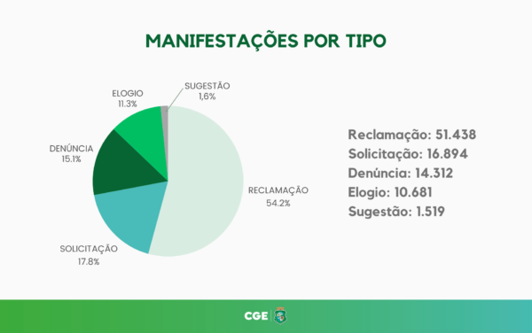 Entre janeiro e dezembro de 2025, o sistema registrou 94.844 manifestações, distribuídas entre reclamações, solicitações, denúncias, elogios e sugestões. O conjunto de dados evidencia que a população utiliza a Ouvidoria não apenas para apontar problemas, mas também para reconhecer boas práticas e fortalecer as políticas públicas.