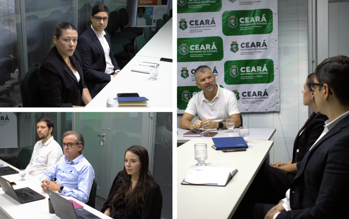 Participaram do encontro, como representantes da CGM Fortaleza, a Corregedora Geral do Município, Juliana Fuques, e o Auditor de Controle Interno, Bruno Weyne, que apresentaram dúvidas e pontos de interesse relacionados as atividades correcionais. Pela CGE, estiveram presentes o Coordenador da COSCO, Antonio Paulo da Silva, e os auditores de controle interno Alexandre Triandopolis, Brenda Barros, Denise Araújo, Fernanda França e George Dantas.